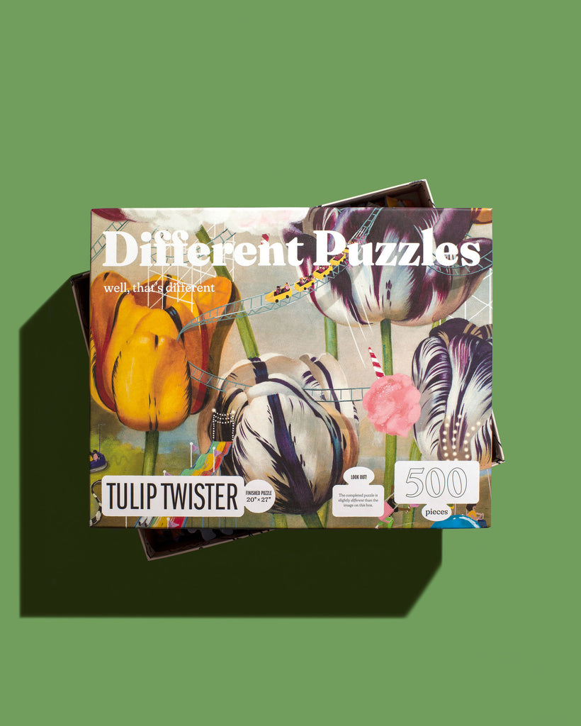 Behold! The Tulip Twister is a 500-piece puzzle beyond your wildest dreams. Filled with refined sugar highs and stomach-in-mouth delight, you’ll find yourself chanting “one more time!” before it’s even over. But as with any good roller coaster ride, you might come away from this puzzle a little dazed and confused.